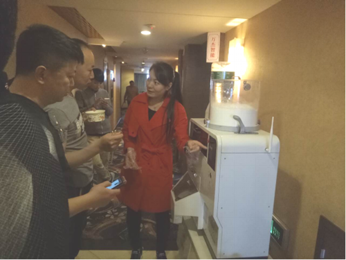 當了解智能鮮面機的工作原理、現場觀看制面過程、品嘗現制鮮面條后,參觀者都對智能鮮面機安全、衛生、快捷的特點贊不絕口;而當深入了解我們的商業模式之后,更是嘆服。一些有創新想法的快消品經銷商,已經躍躍欲試,準備開展合作大干一場。