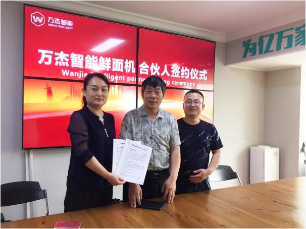 近日,萬杰智能鮮面機全國招商政策剛剛調整完畢,北京運營中心就傳來捷報。2017年7月3日,內蒙古赤峰市范保民先生與萬杰智能正式簽約,雙方就今后智能鮮面機在該區域的具體合作內容及目標達成一致。面對智能鮮面機全國招商政策的大好形勢,赤峰市搶占先機,成為全國招商政策初定后,第一個簽約的合伙人城市。
