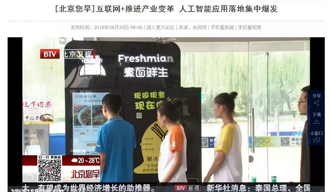 | 2018年8月30日早,萬(wàn)杰智能熟面機(jī)在北京衛(wèi)視的《北京您早》欄目中亮相,與智能音箱、在線教育等產(chǎn)品一起,向公眾展示人工智能技術(shù)研發(fā)與產(chǎn)業(yè)應(yīng)用的最新進(jìn)展。 https://v.qq.com/x/page/k077205p6na.html 近年來(lái),人工智能的普及為我們的生活、生產(chǎn)等各領(lǐng)域帶來(lái)便利和技術(shù)迭代,現(xiàn)已在線下零售店、家庭兒童教育、養(yǎng)老陪護(hù)、家務(wù)工作,醫(yī)療健康等多重場(chǎng)景迅速落地。作為在智能主食機(jī)械行業(yè)智能化發(fā)展的踐行者,萬(wàn)杰智能熟面機(jī)—煮面鮮生為民生領(lǐng)域人工智能發(fā)展樹(shù)立了標(biāo)桿,成為了與百姓息息相關(guān)的主食機(jī)械行業(yè)里的人工智能代表。 煮面鮮生從面粉到一碗熱氣騰騰的面條只需要40余秒鐘,通過(guò)手機(jī)掃碼下單,掃碼取餐,所有的支付都在線上完成,高度智能化的操作與用戶體驗(yàn),為公眾的生活帶來(lái)諸多便利。同時(shí)產(chǎn)品國(guó)內(nèi)首創(chuàng)、行業(yè)唯一的自身優(yōu)勢(shì),搭乘人工智能發(fā)展的快車(chē)道,受到媒體與公眾的認(rèn)可。 伴隨著“互聯(lián)網(wǎng)+與人工智能”的深入發(fā)展,以萬(wàn)杰智能熟面機(jī)為主的智能化主食機(jī)械產(chǎn)品,將更好地為智能化研發(fā)與產(chǎn)業(yè)應(yīng)用發(fā)展提供范例,助力整個(gè)主食機(jī)械行業(yè)實(shí)現(xiàn)智造升級(jí)。值得一提的是,本次萬(wàn)杰智能熟面機(jī)亮相北京衛(wèi)視,成為民生領(lǐng)域人工智能代表的新聞,同時(shí)又受到了央視、搜狐、新浪、優(yōu)酷等媒體的轉(zhuǎn)載報(bào)道,引發(fā)媒體與公眾的持續(xù)關(guān)注。 萬(wàn)杰智能—為億萬(wàn)家庭主食安全服務(wù)! |