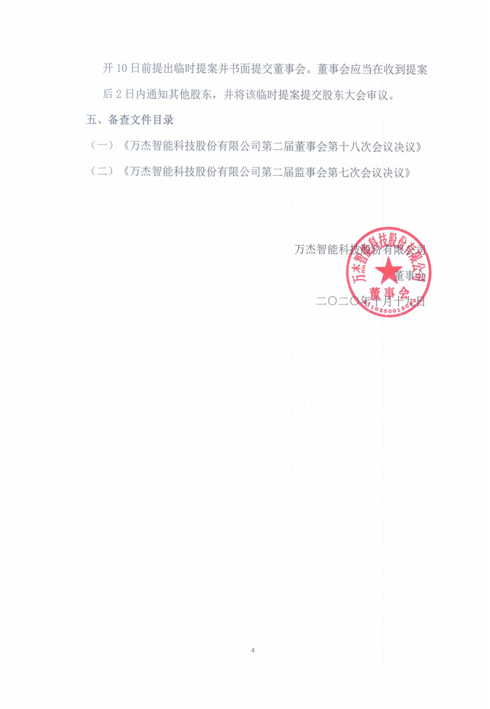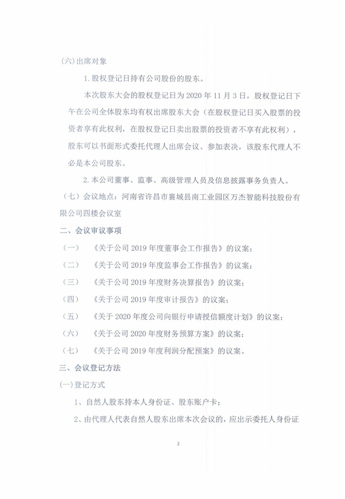 萬(wàn)杰智能關(guān)于召開(kāi)2019年年度股東大會(huì)的通知公告