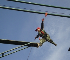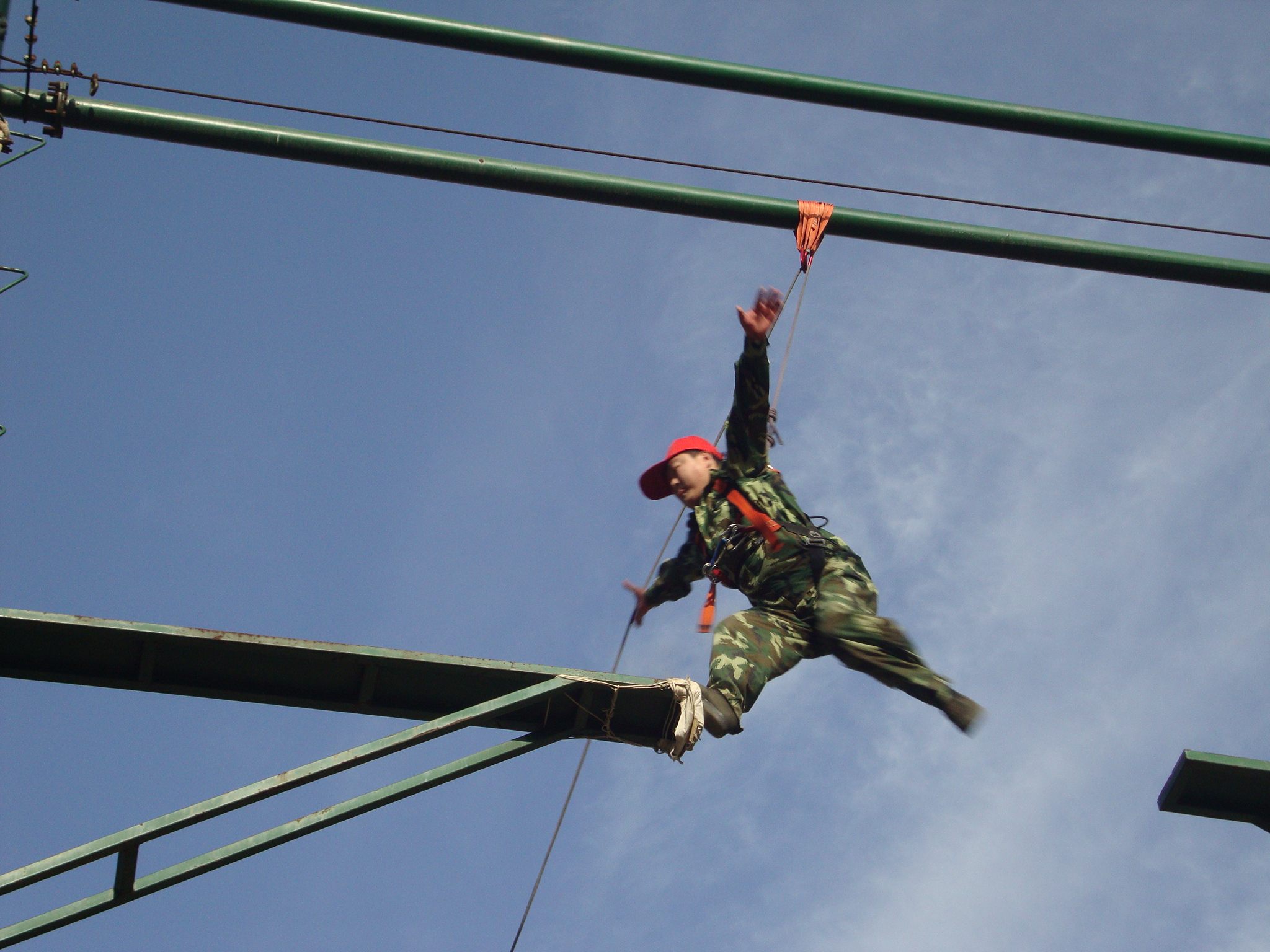 高空斷橋:在距離地面8米的高空搭起了一座獨(dú)木橋,而這個(gè)橋的中間卻是斷開的,間距1.2米-1.4米,要求每個(gè)隊(duì)員爬上8米的高空后,在空中躍起,從橋的這側(cè)跳到另一側(cè), 雖然身上掛滿了安全保護(hù)措施,但在高空跳躍,每個(gè)人都產(chǎn)生了或多或少的恐懼感,從爬上去站到高空已是一次極大的考驗(yàn),從高空躍到對面更是一次心理的挑戰(zhàn)。有的同伴從滿臉通紅到面色蒼白,有的戰(zhàn)戰(zhàn)兢兢不敢站立,有的站了許久不敢躍起,還有的上去之后直叫:“我有恐高癥!是真的……”在隊(duì)長的帶領(lǐng)下,我們?yōu)槊恳粋(gè)參訓(xùn)的隊(duì)員“加油”,目送他們一個(gè)一個(gè)爬上搖搖晃晃的高桿,然后不斷呼喊他們的名字,每完成一個(gè)步驟都熱烈地鼓掌高呼。結(jié)果,全隊(duì)20多名隊(duì)員都順利完成了這項(xiàng)訓(xùn)練,zui后大家用熱烈的掌聲慶賀自己的成功和勝利。 此項(xiàng)目心得體會:表面看起來很難的事,其實(shí)并沒有想象中那么可怕。在工作、生活中,遇到困難并不可怕,怕的是失去解決困難的勇氣和信心!心理的障礙是zui難逾越的,我們?nèi)绻蔀閺?qiáng)者,首先就必須挑戰(zhàn)自己的恐懼感,當(dāng)我們豁出去一搏,勇敢地跨出一小步,也許就能抓住屬于自己的機(jī)會,實(shí)現(xiàn)人生一大步的跨越。